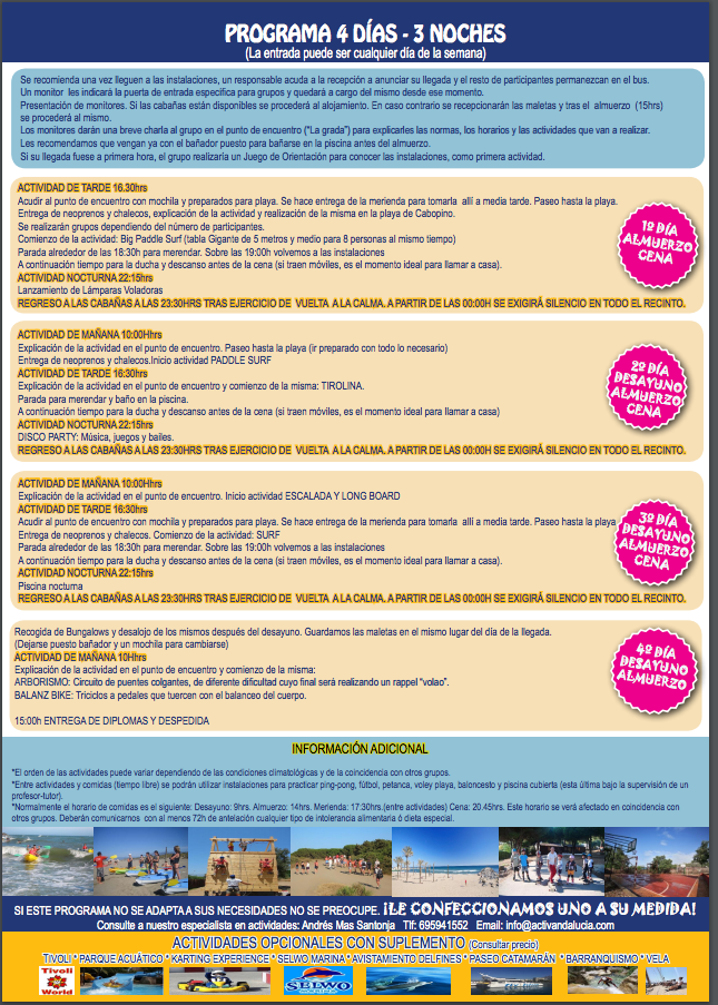Nosotros vamos a realizar un programa de 4 días y 3 noches.