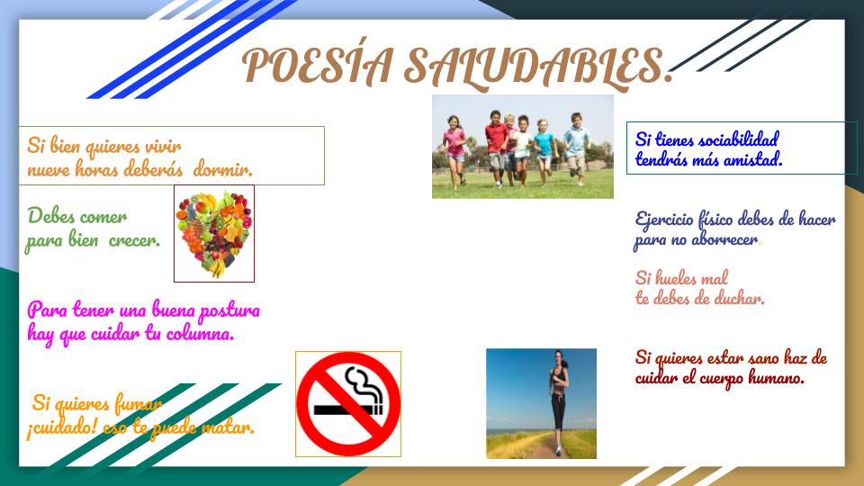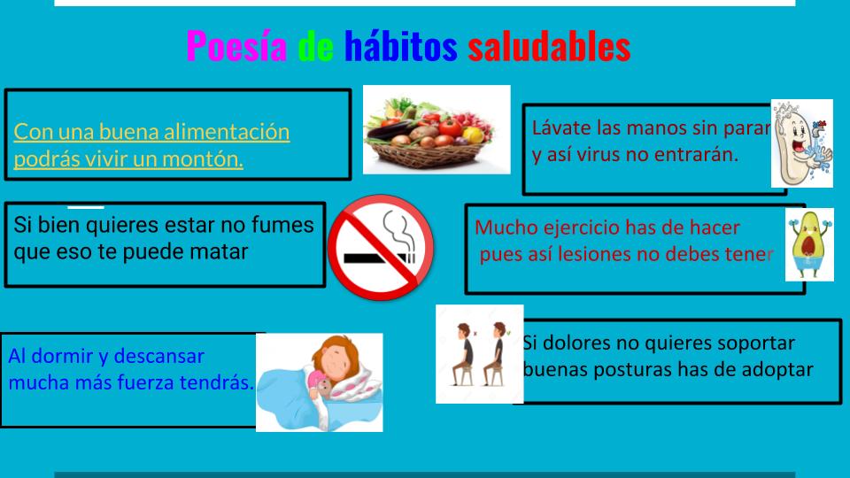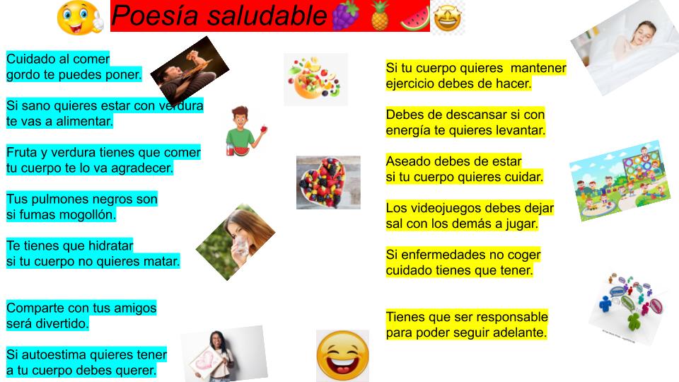 A continuación, el alumnado habrá de realizar, en grupos, una poesía relacionada con los hábitos saludables. En esta ocación, hemos elegido Google presentations para realizarlas.