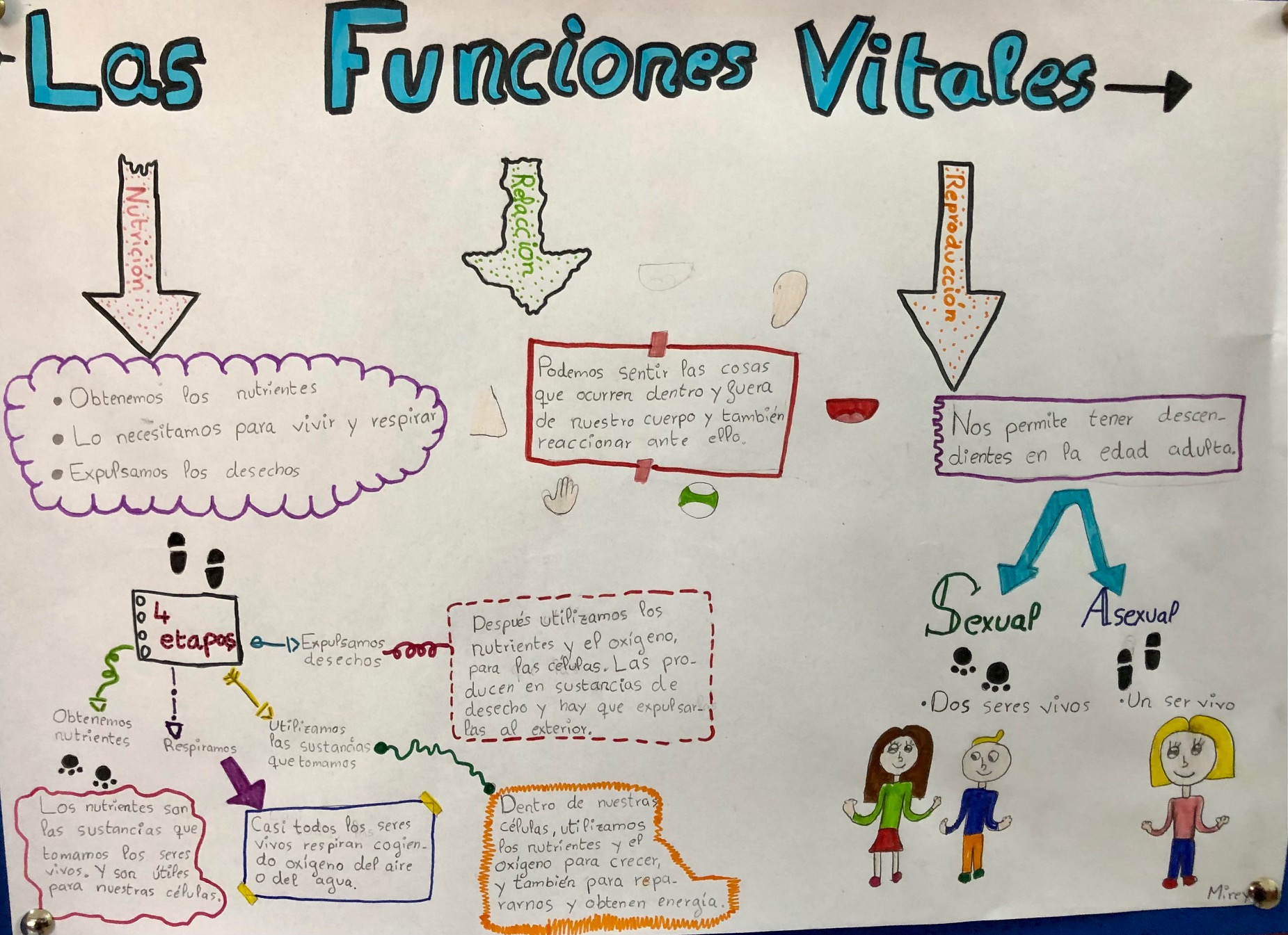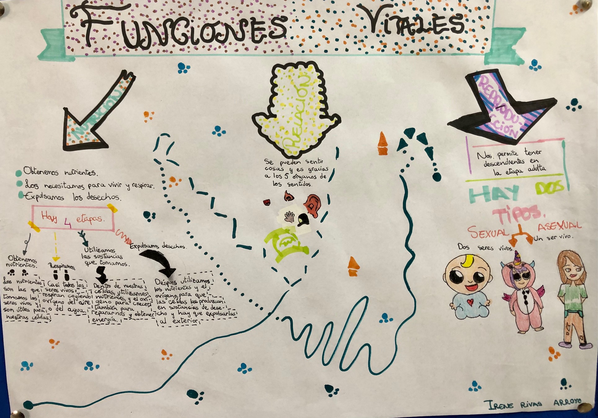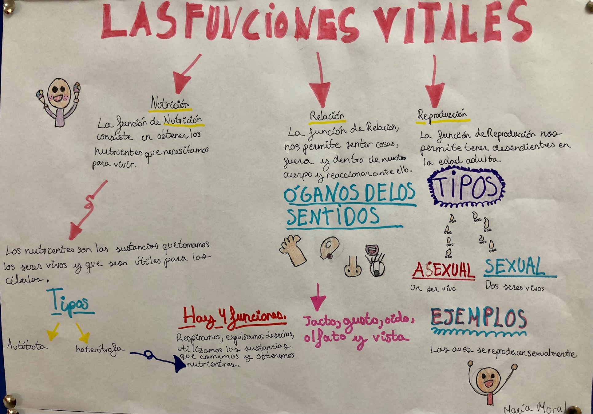 El alumando habrá de buscar información sobre dichas funciones vitales y a continuación realizar un mapa conceptual. Adjuntamos algunos ejemplos realizados por nuestro alumnado.