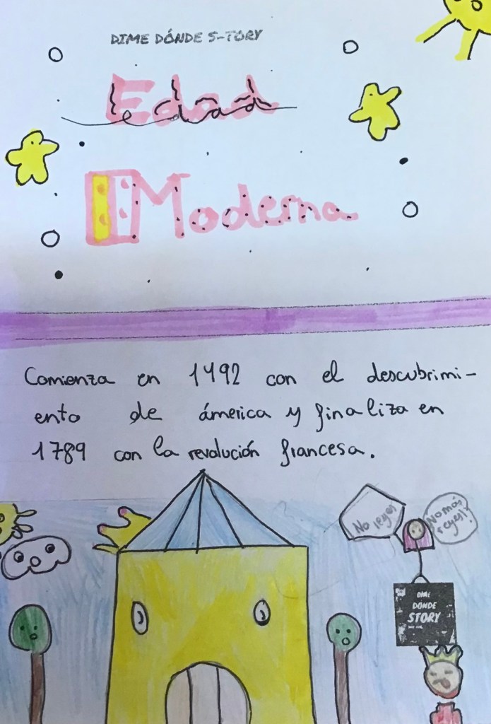Esa línea del tiempo la hemos ido completando poco a poco en el transcurso del proyecto, siendo la aglutinadora de todos nuestros productos intermedios, por ejemplo, en ella hemos insertado, a través de códigos QR, los geniallys de cada grupo, explicando las épocas de la historia o los vídeos de cada alumno exponiendo la parte de la historia que tenían asignada.