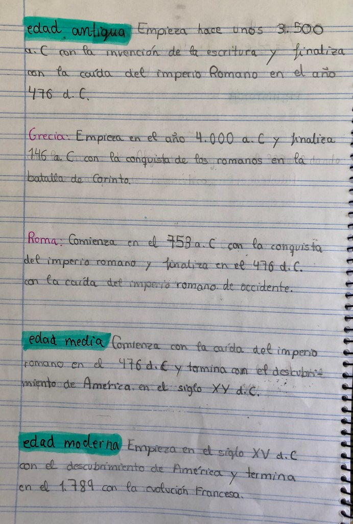 En la primera tarea del proyecto teníamos que realizar una línea del tiempo con los diferentes periodos de la historia.