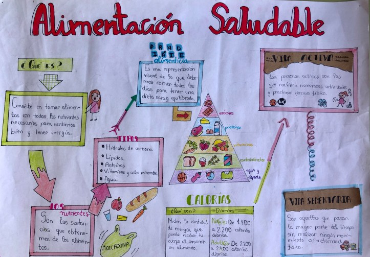 Tras establecer una serie de conclusiones grupales y escibirlas en un documento compartido, deben demostrar los conocimientos adquiridos realizando de forma individual un mapa conceptual o visual thinking sobre la alimentación saludable, que posteriormente deben exponerla al maestro.