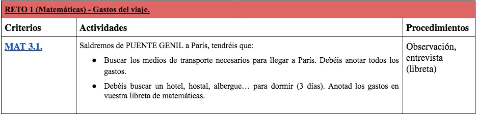 Un ejemplo del reto 1, enmarcado dentro del área de matemáticas sería este: