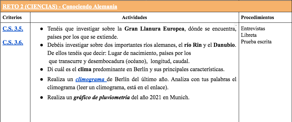 En este reto trabajarmos aspectos de los criterios de evaluación de Ciencias Sociales relacionados con el relieve, la hidrografía, el clima de las distintas capitales y países europeos visitados.