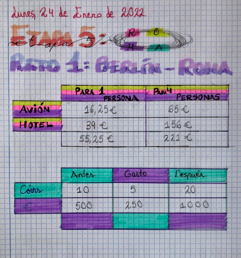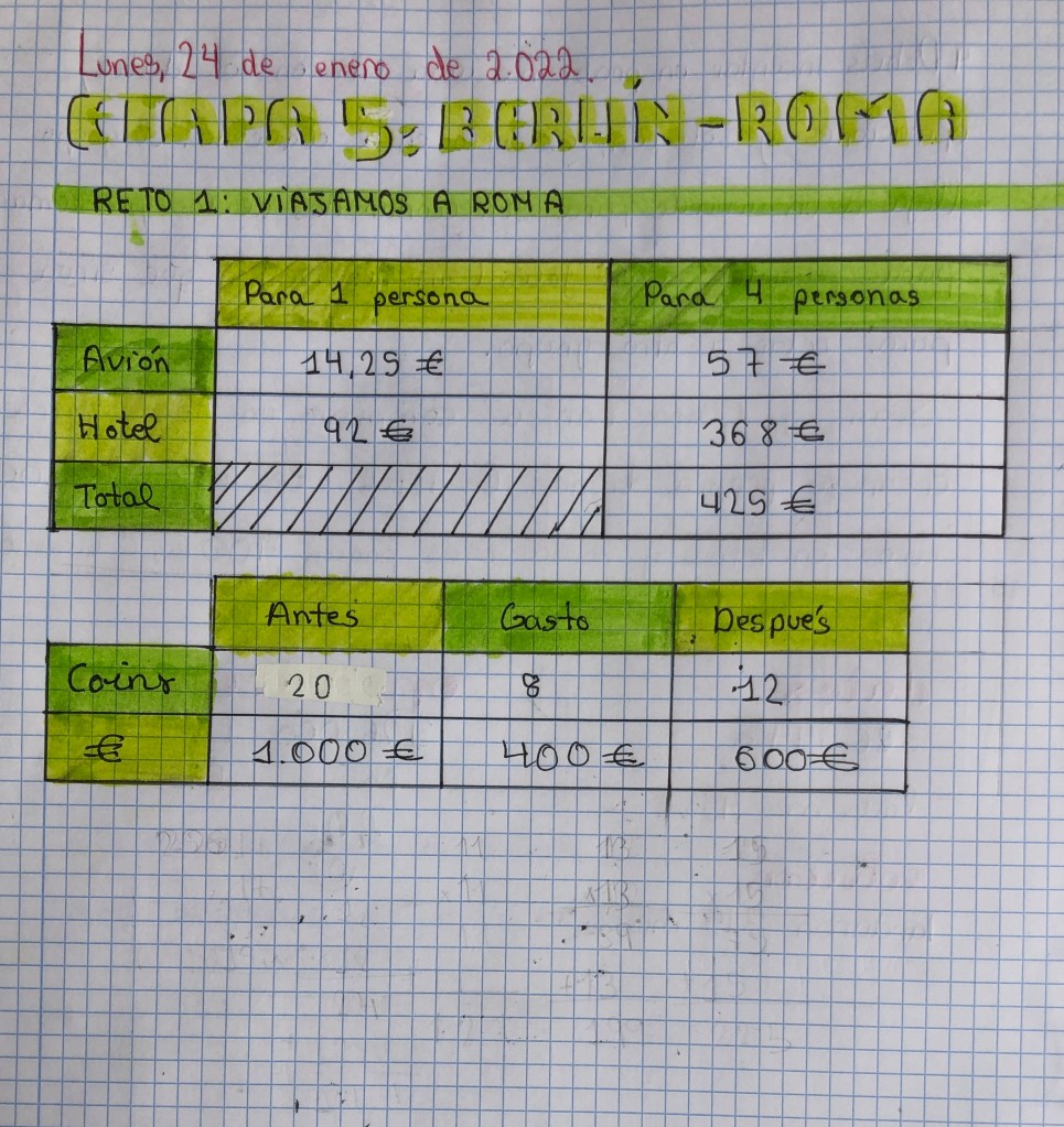 RETO 1: GASTOS DEL VIAJE. MATEMÁTICAS