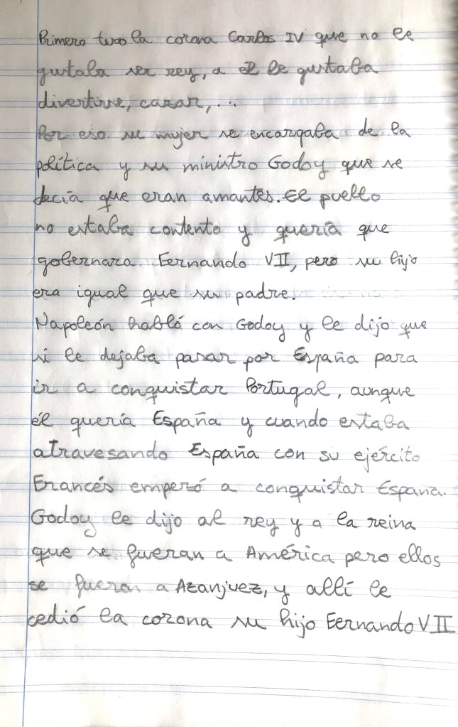 Intentamos que las tareas de nuestros proyectos sean competenciales e interdisciplinares. Por ejemplo, en las tareas de sociales, descritas anteriormente, es evidente que hemos trabajado los criterios de sociales relacionados con la historia de España pero a su vez hemos estado desarrollando competencias inherentes a criterios del área de lengua, de esta forma hemos trabajado la comprensión lectora, comprensión oral, hemos leído diferentes tipos de textos y hemos realizado numerosas producciones escritas entre otras actividades.