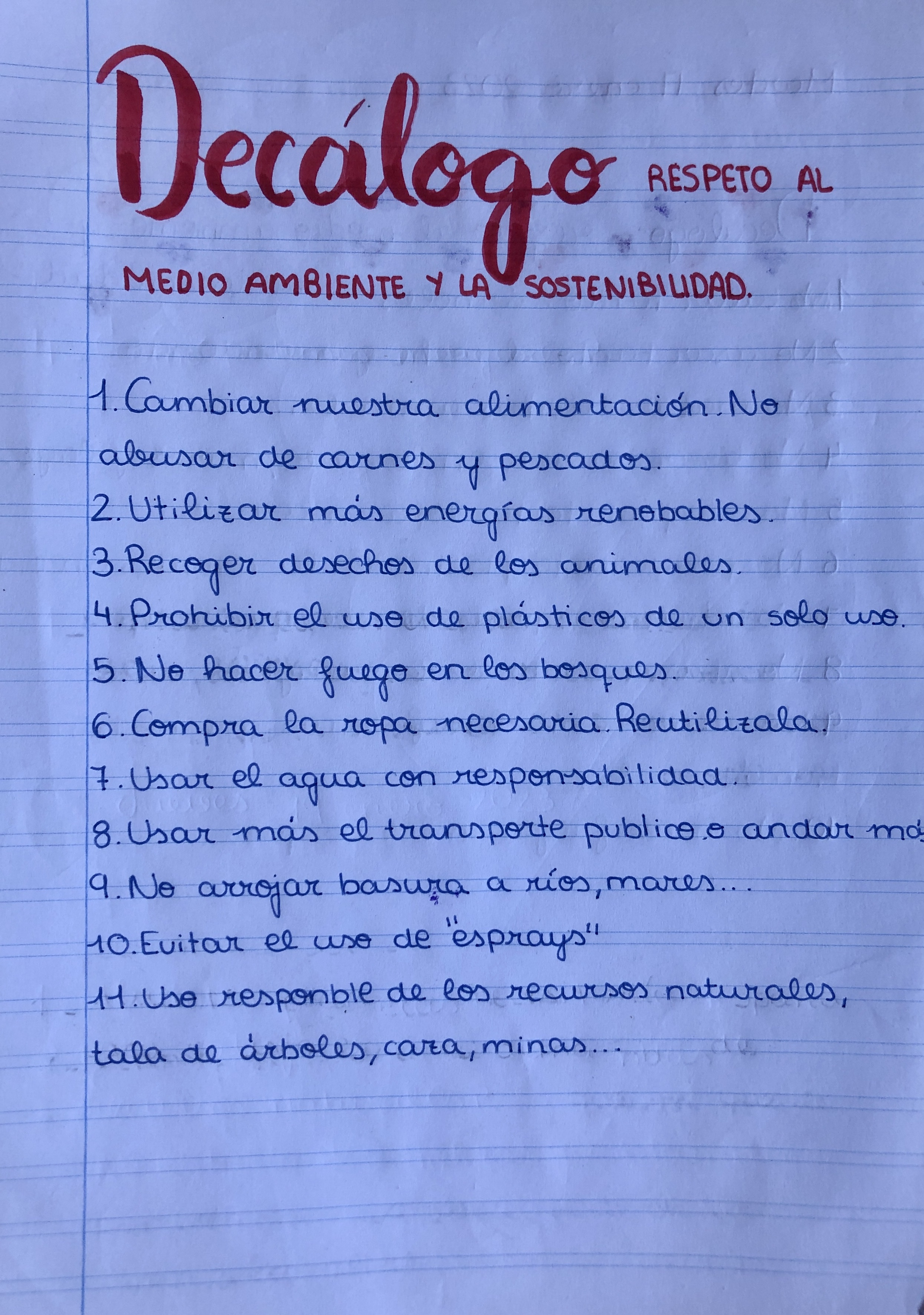 Hemos pedido a nuestro alumnado que elabore un decálogo de ideas que puedan hacer mejorar nuestro pueblo desde el punto de vista del respeto al Medio Ambiente y la Sostenibilidad.