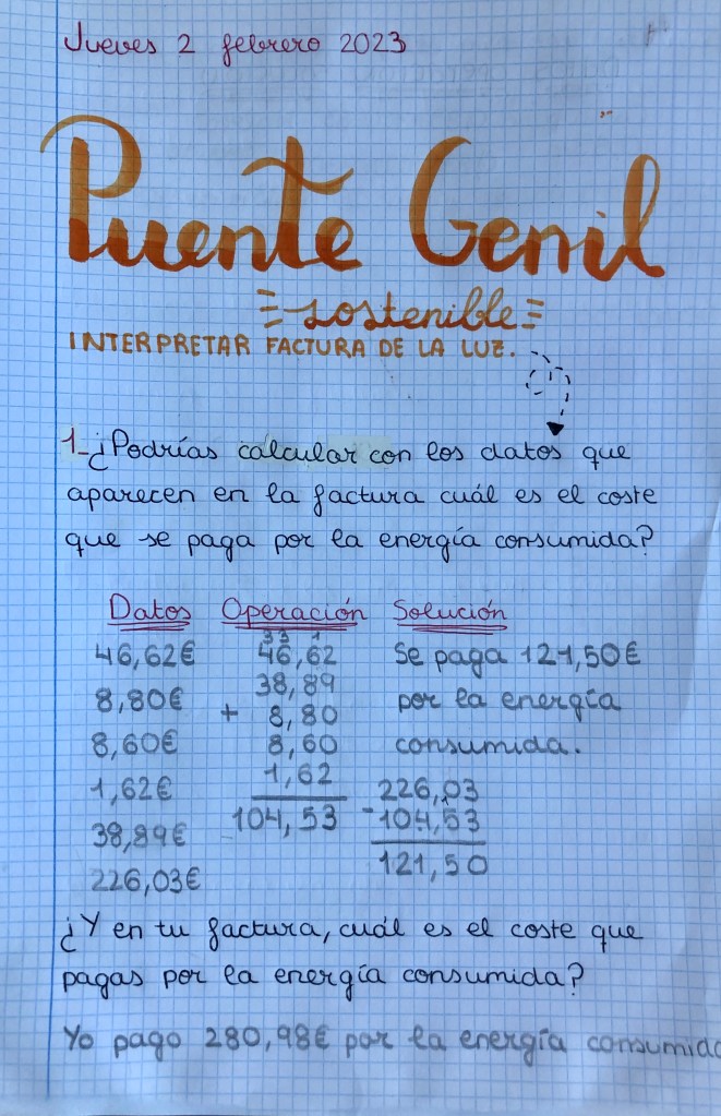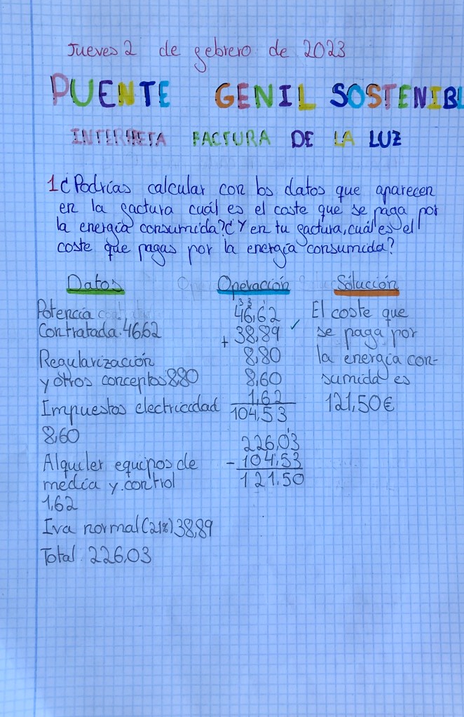 Ahora vamos a resolver una situación de la vida real realizando un estudio de cuánto ahorro si instalo energía fotovoltáica en nuestra casa y tiempo de amortización. Para ello, le entregamos a nuestro alumnado el siguiente documento: