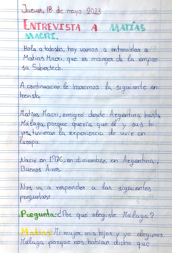 Realizaremos un Taller de Lengua sobre la redacción de entrevistas.