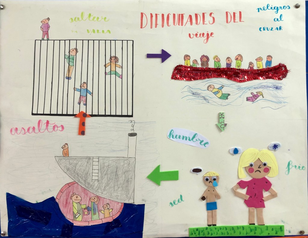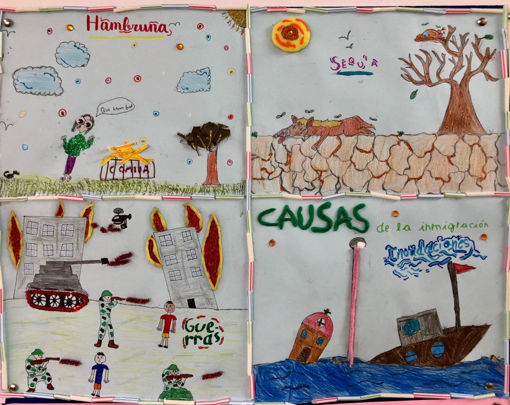 Realizamos una obra de arte colectivo que exprese, mediante diferentes técnicas plásticas, las causas, las dificultades y las consecuencias de las migraciones.