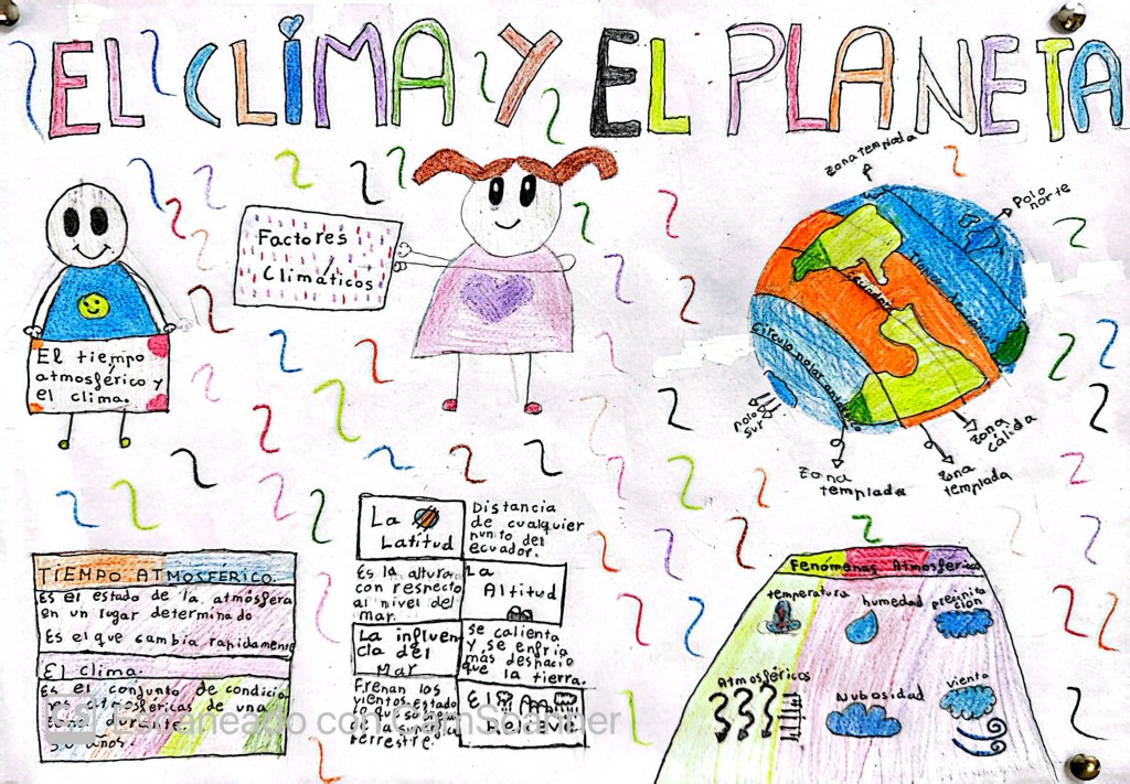 Conoceremos, por medio de este documento, los principales elementos del clima y las grandes áreas climáticas del mundo a través de varios vídeos. Una vez vistos los vídeos debéis realizar un mapa visual (visual thinking). Se trata de poner las ideas en orden y en una cartulina plasmarlas de forma atractiva y que nos sirva para aprender mejor. Expondremos estos trabajos en el pasillo de nuestras clases.