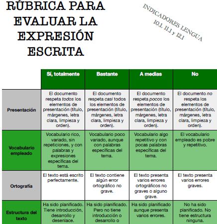 Rúbrica de expresión escrita